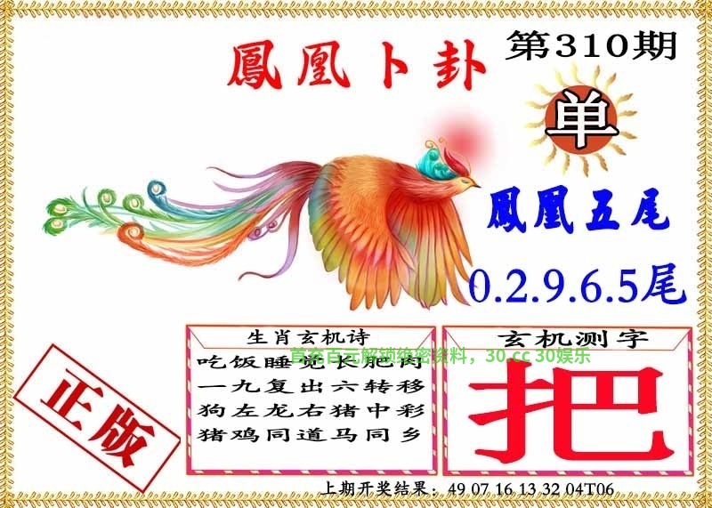 314期:凤凰特码【四字平特】已公开!