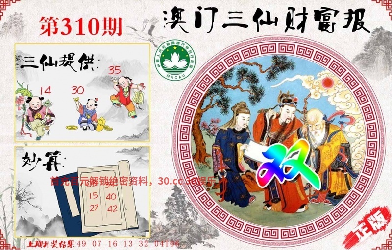 314期:仙机运财【一段中特】已公开!