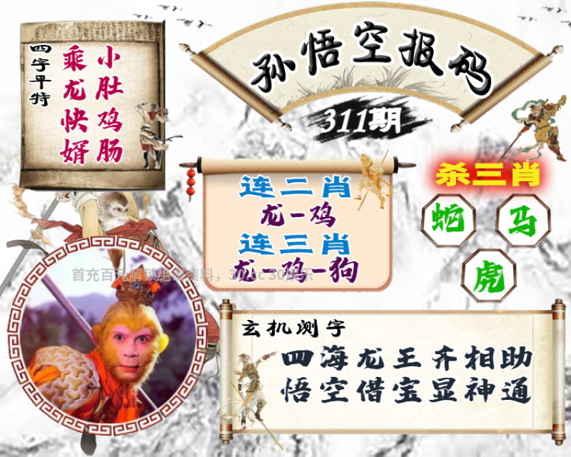 312期:复式连肖【狗马猴龙】中3个